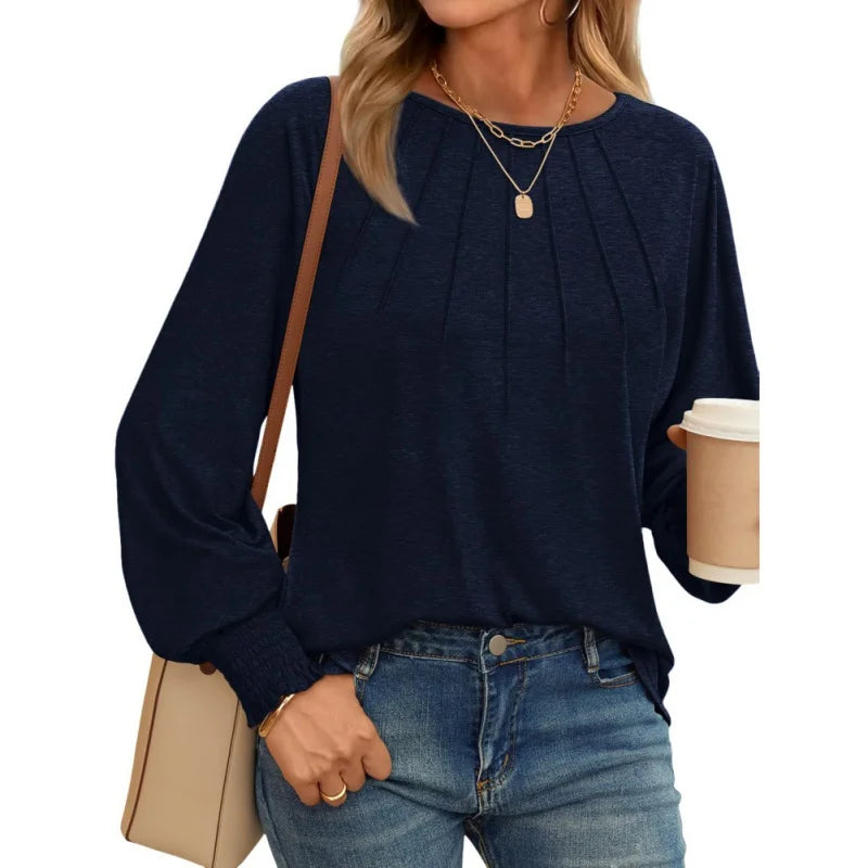 Womens Long Sleeve Sweatshirts Fall Tops Pleated Shirts Casual Loose Dressy Basic Trendy Clothes 2024
